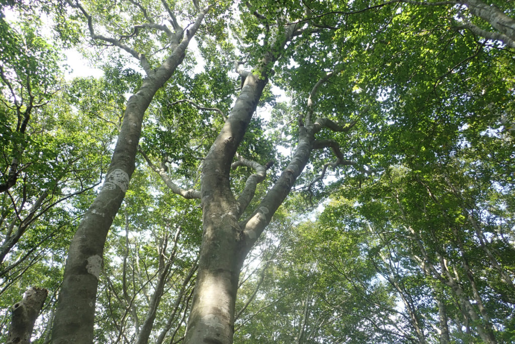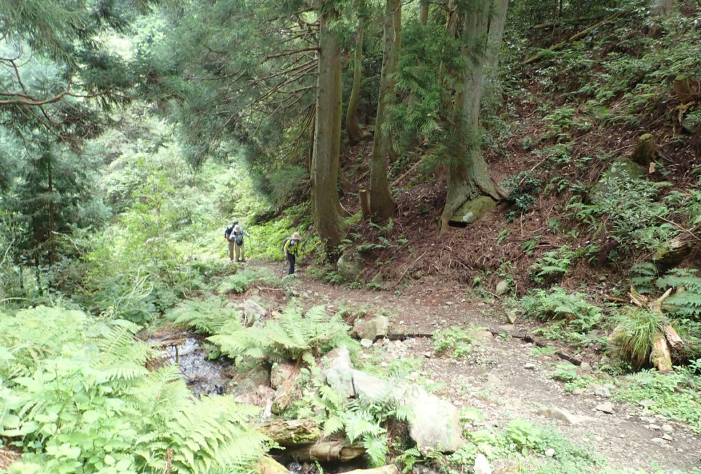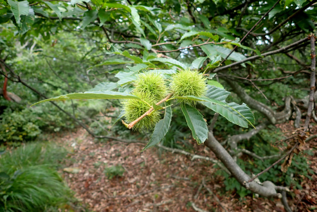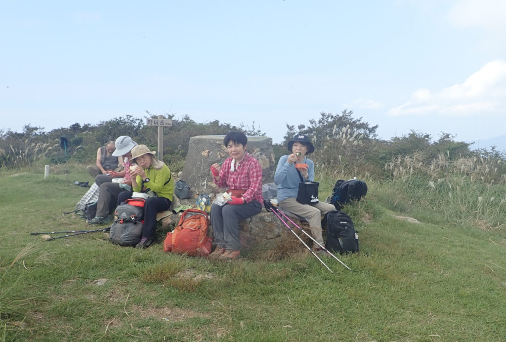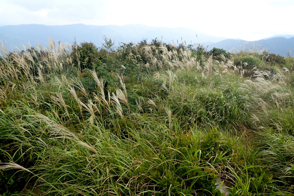 9月も半ばだというのに暑い、今日も登り始めるとさしたる急登もないのにすぐに汗が噴き出る。登山口から1時間くらいで行者岩に到着、岩の上からは敦賀湾一帯が望めた。一の岳、二の岳と高度を稼ぎ、稜線にたどり着くと見事なブナ林が眼前に広がっている。頂上は360度の展望があり、沢山のススキが風に吹かれて揺らいでおり誠に気持ちが良い。下山時、「橡の木地蔵」の足元から湧き出る山水は甘く冷たくて、たっぷり飲んでしまった。