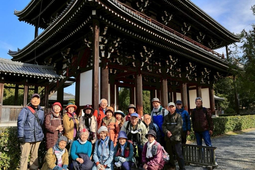 残り紅葉を期待して東福寺へ、すっかり最盛期は過ぎていたが参観者が少なくて良かった。東福寺で見るべきは「伽藍面」と言われるだけに19年の歳月を掛けて造られた七堂伽藍の建物の数々、国宝も多くて見応えがある。鳥羽伏見戦殉難者之墓や仲恭天皇の御霊までの階段を登って行くとほとんど人の姿は無く、大勢だから良いがここには一人では来たくないと思った。(一瀬 記 写真 中川)