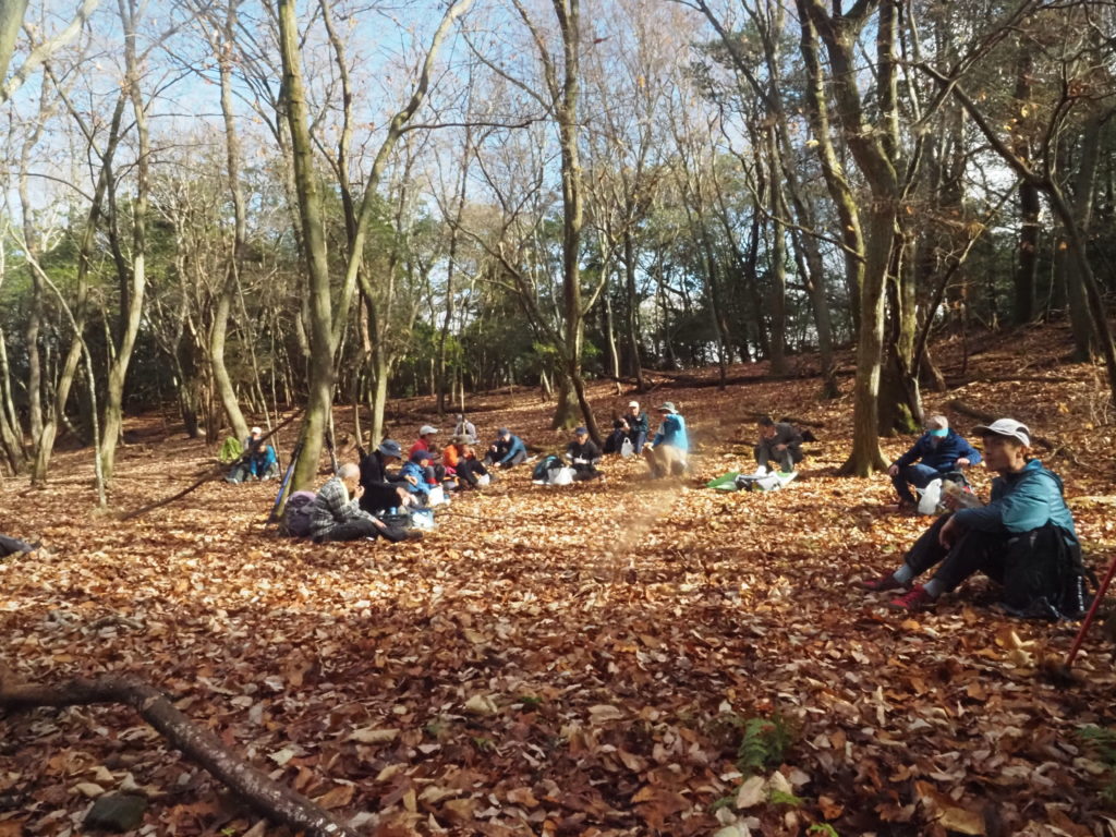 ・コース=集合、銀閣寺交差点(9:00)~登山口(9:15)~出城跡~中尾城址(10:30)~中尾滝(10:50)~(11:53)昼食会場(12:40)~山頂(13:00)解散