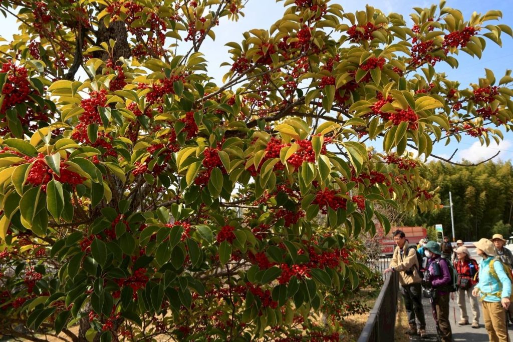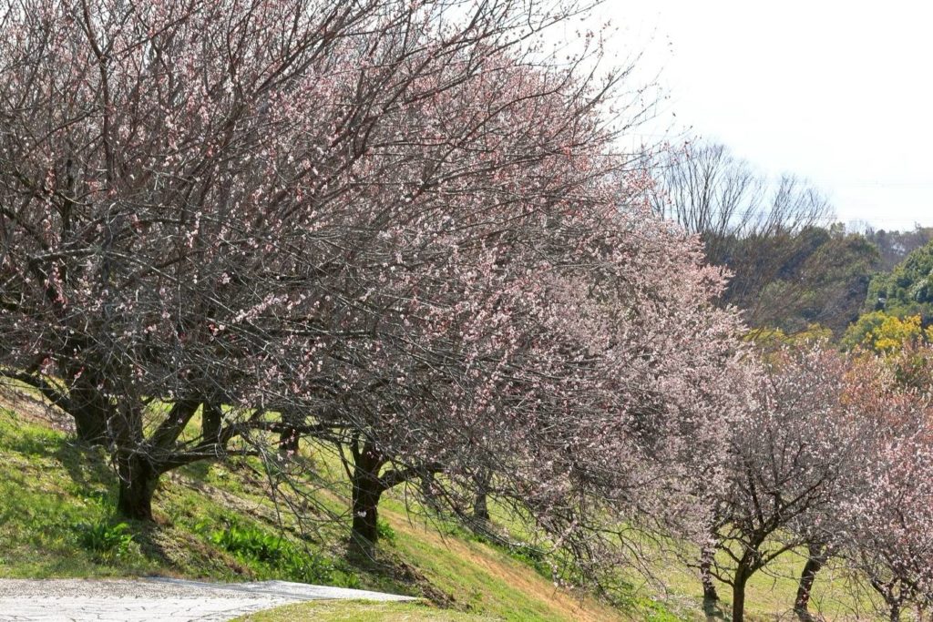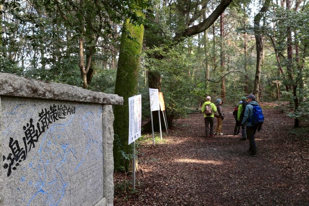 ・コース=JR城陽駅(9:40)~(10:00)水度神社~(10:25)鴻ノ巣山展望台~(10:50)城陽市総合運動公園(11:20)~(11:45) 五里五里の丘・昼食(12:10) ~(12:25)森山遺跡~(12:40)大蓮寺~(13:10)青谷梅林(13:40)~(14:10)JR山城青谷駅解散