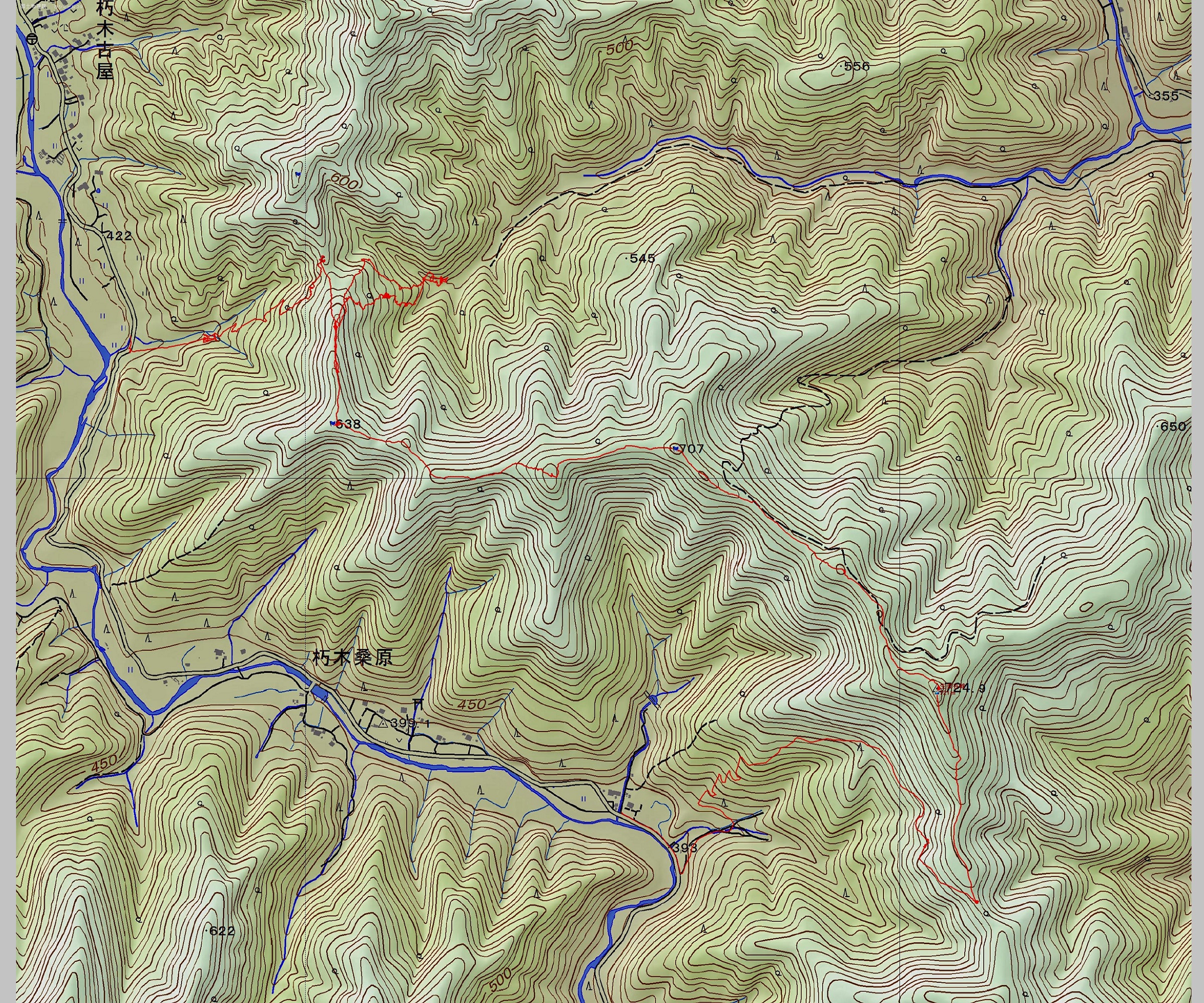 ・コース=南古屋早谷〜早谷峠〜Ca.600〜早谷源頭〜Ca.520付近 巨樹の切り株〜P638〜P707