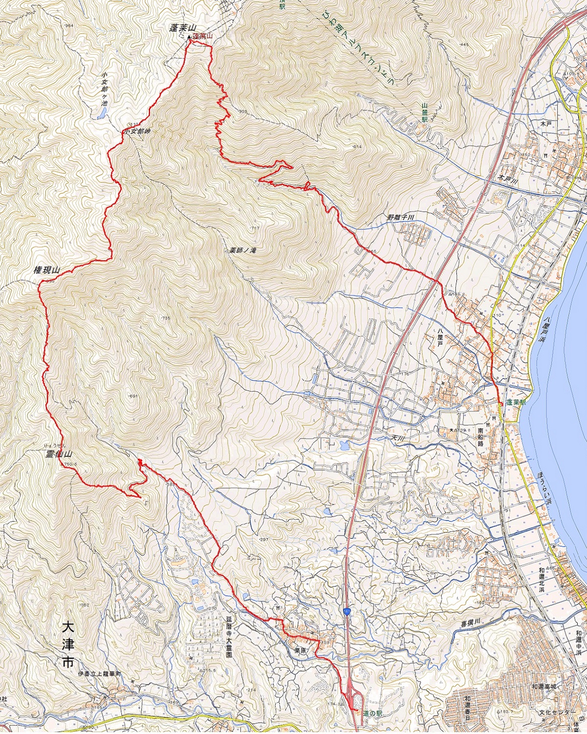・コース=妹子の郷〜栗原〜霊仙山〜権現山〜小女郎峠〜蓬莱山〜JR蓬莱駅