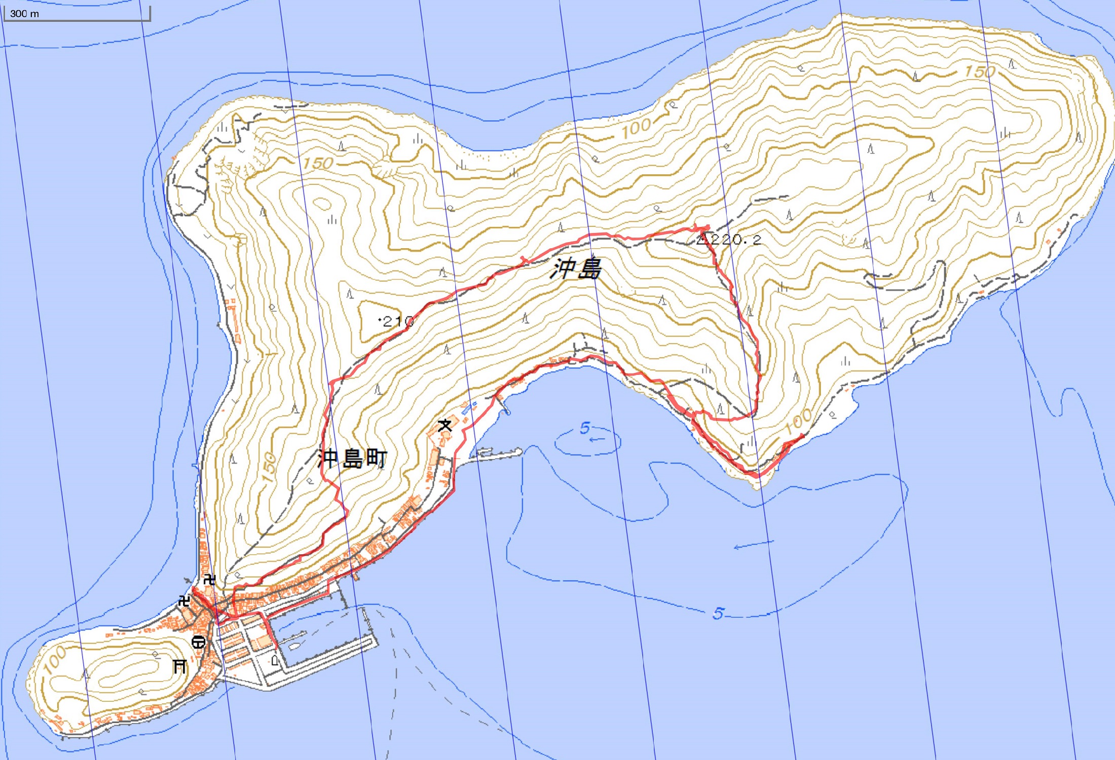 ・コース=沖島〜沖島小学校〜取付口〜(厳島神社往復)〜取付口〜蓬莱尾山三角点〜頂上展望場〜ケンケン山〜沖島港