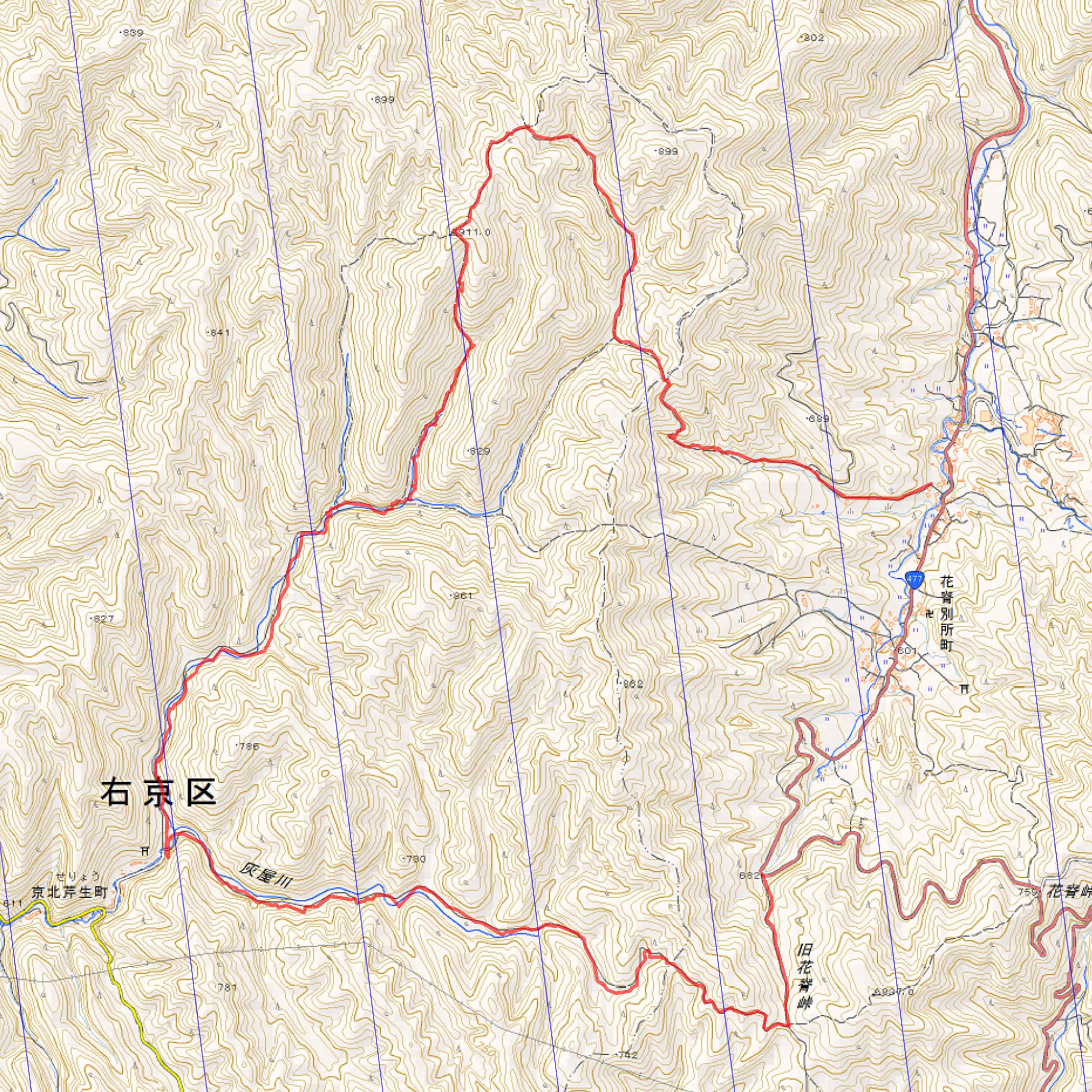 ・コース=花背高原〜寺山峠〜一の谷出合〜雲取峠〜雲取山〜二の谷〜三の谷出合〜勢竜天満宮〜旧花背峠〜古道岐バス停
