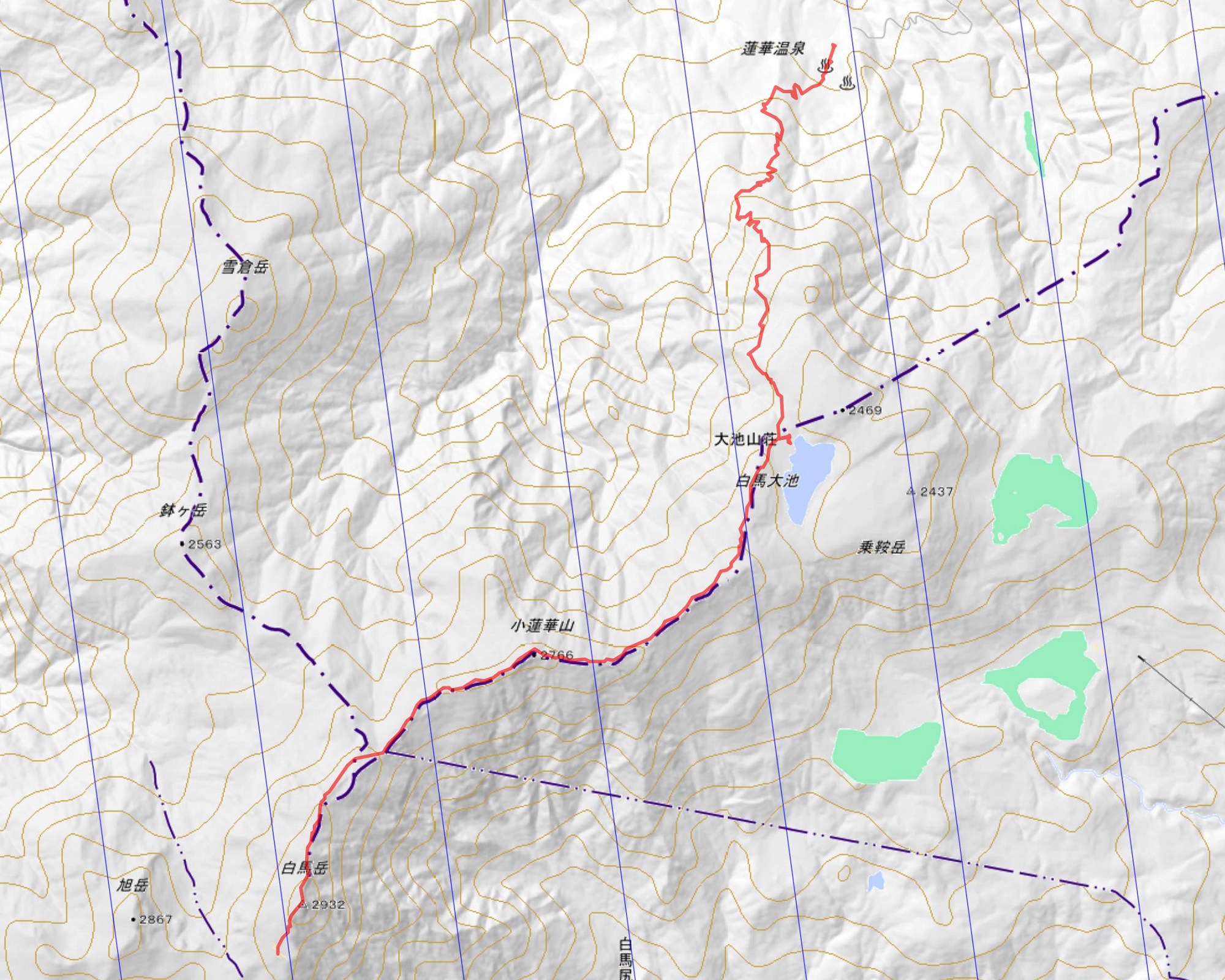 ・コース=8月2日 蓮華温泉〜天狗の庭〜白馬大池〜小蓮華山〜三国境〜白馬岳〜白馬山荘