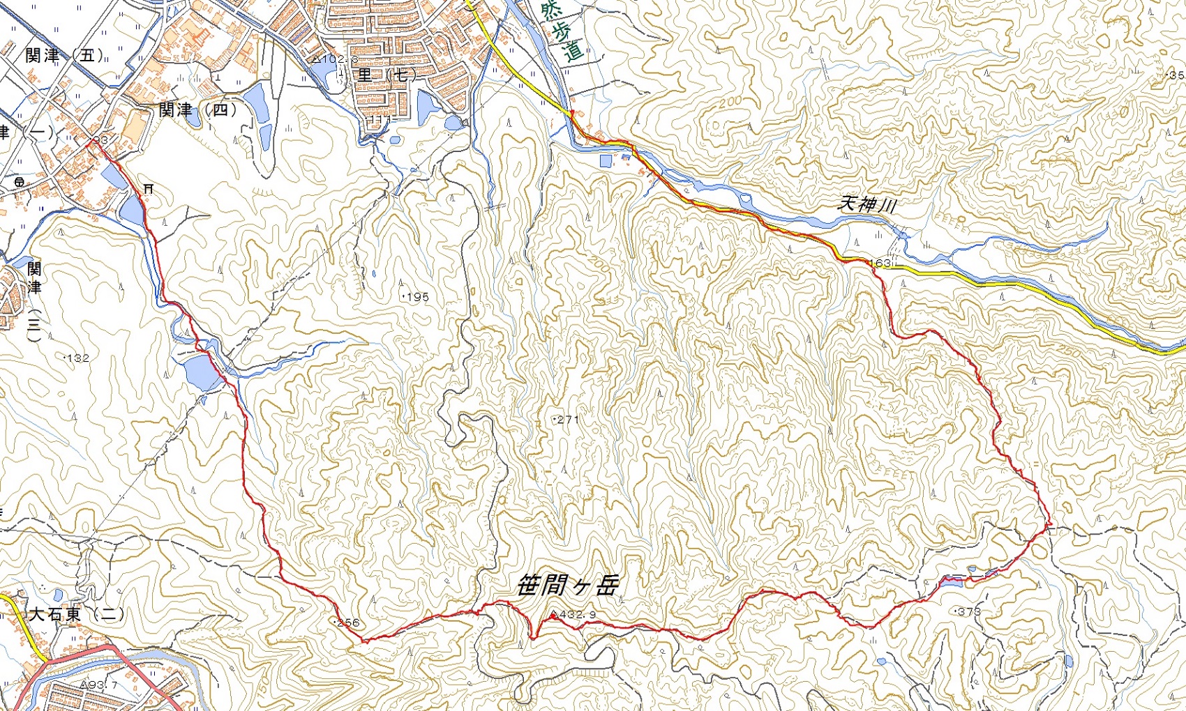 ・コース=アルプス登山口〜富川道分岐〜御仏河原〜大谷河原〜笹間ヶ岳〜上津バス停