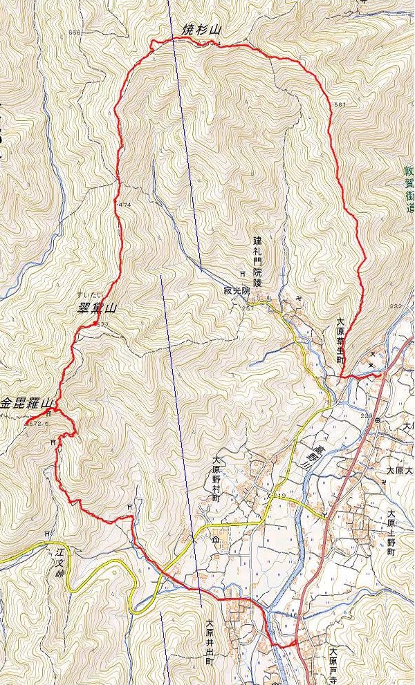 ・コース=戸寺バス停〜江文神社〜金毘羅山〜翠黛山〜焼杉山〜・581〜大原