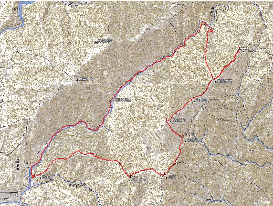 ・コース=惣王神社駐車場〜ベンケイ〜舟石〜ミズナシ〜御所平〜Ca820〜ヨコネ(引返し)〜