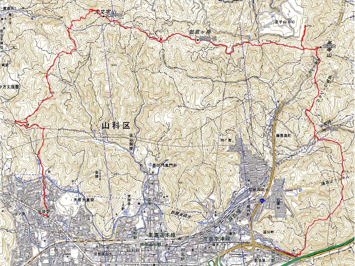 ・コース=京阪追分駅〜逢坂山〜小関越〜長等山〜長等山三角点〜如意が岳〜大文字山〜鹿ケ谷〜
