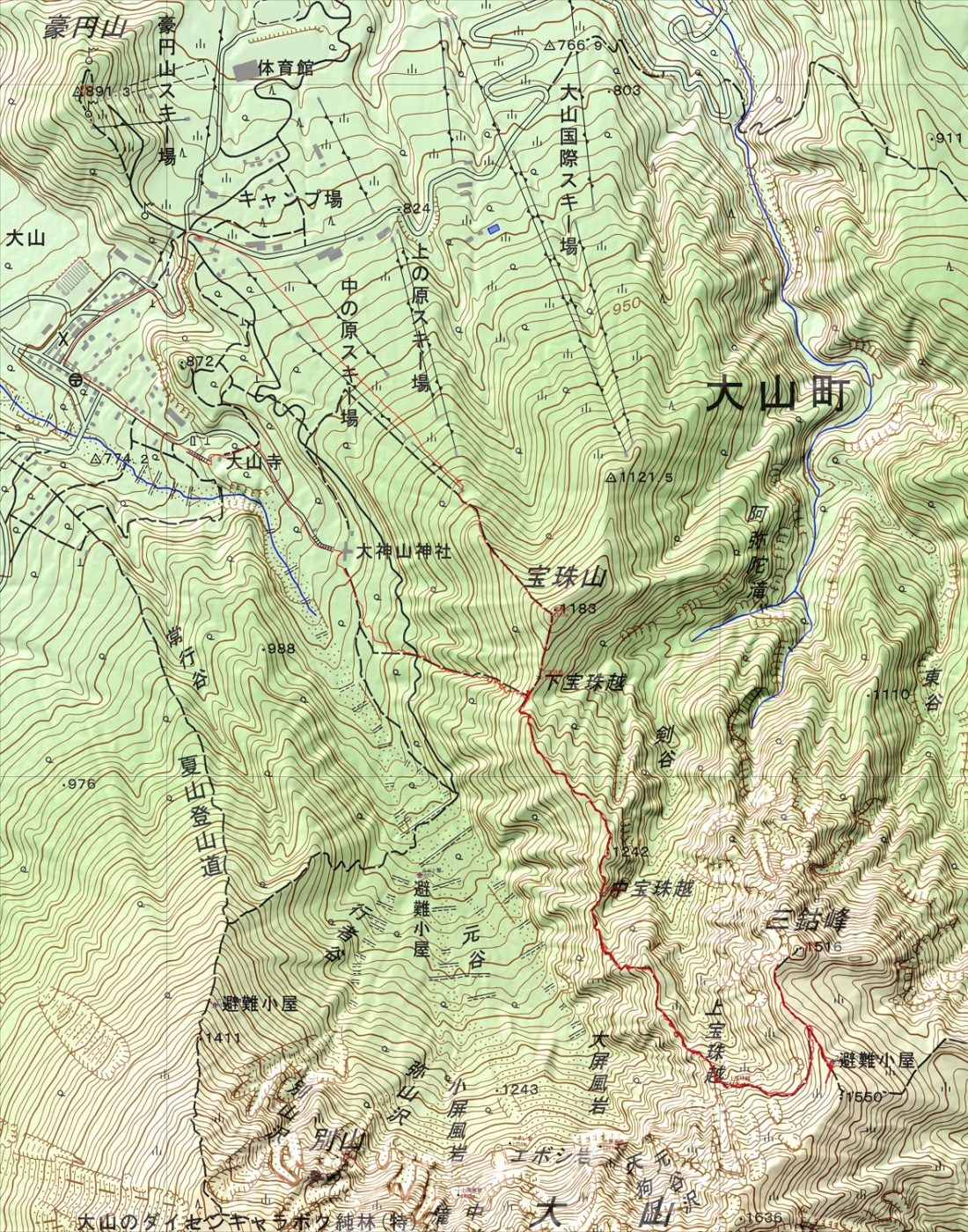 ・コース=1日目、東坂登山口〜薄ヶ原〜船上神社〜△940.8m〜△1148.9m〜P1193m〜