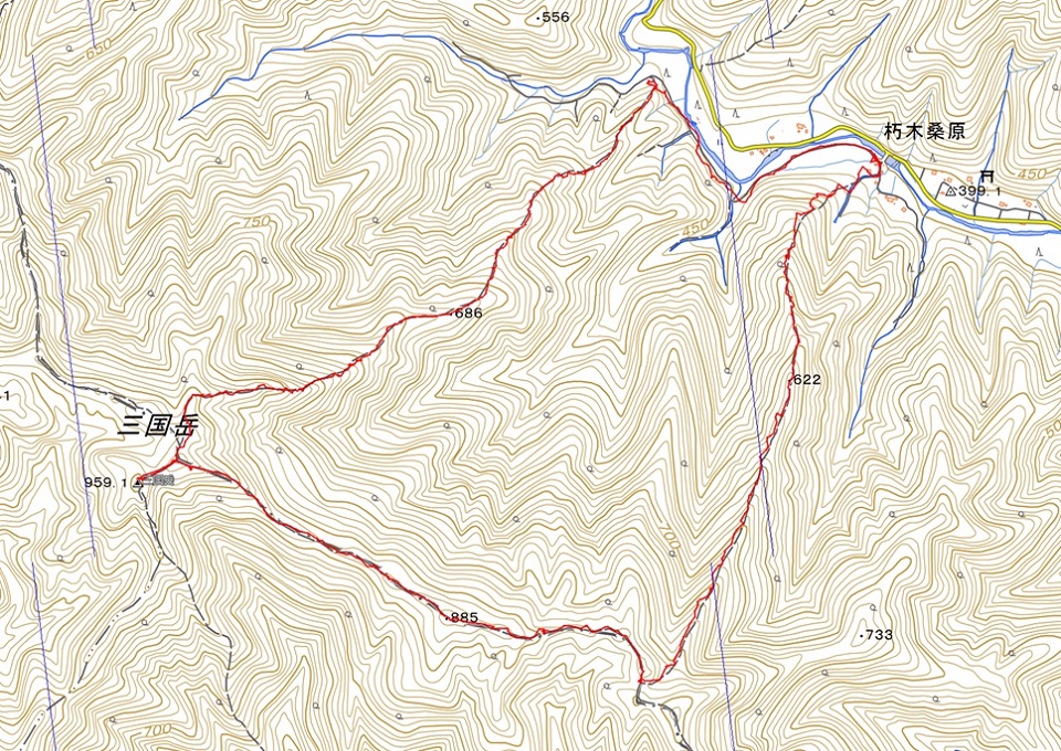 ・ コース= 桑原〜三国岳登山口〜・686〜三国岳〜・885〜丹波超〜・622〜桑原