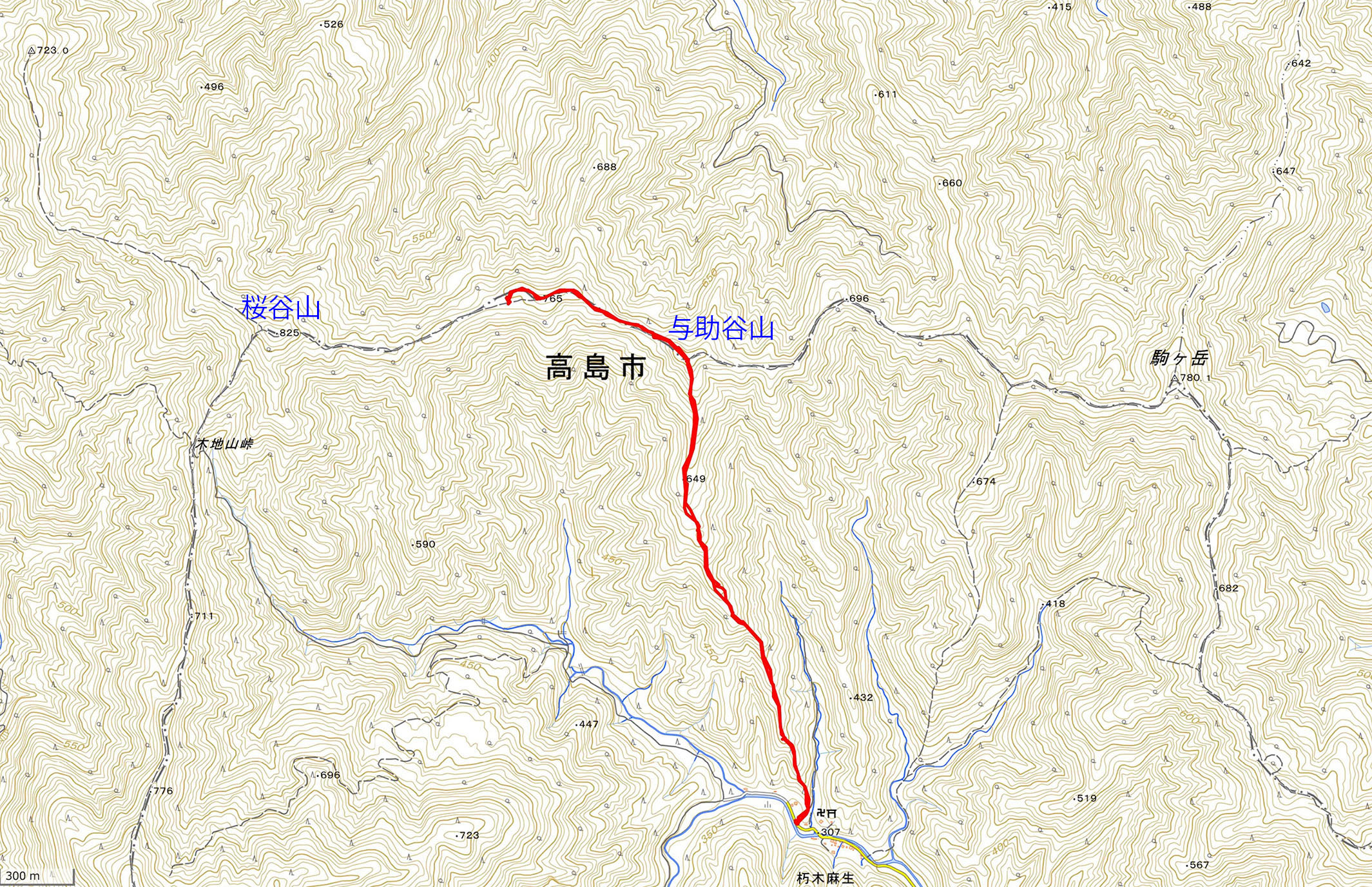 ・コース=朽木麻生駐車(9:10)〜(10:28)独標649〜(10:57)与助谷山山頂〜(11:36)独標765