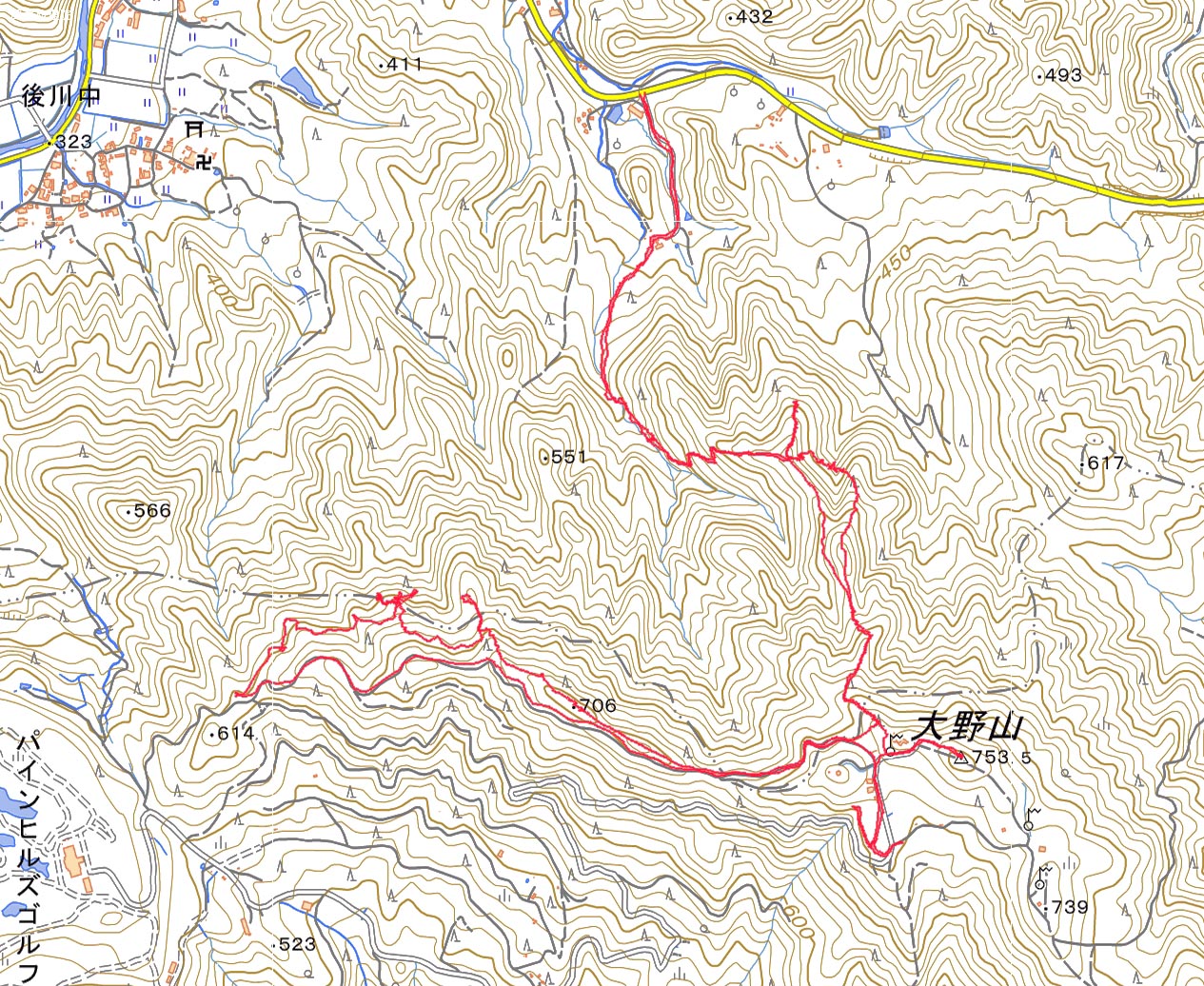 渓谷の森駐車場は、今は閉鎖するとの事で入り口の隅に車を停めさせてもらう。以前来たルートと違うルートで登ることにして、キャンプ場奥の登山口から入り途中で二ヵ所徒渉して山中の尾根を歩いて中間あたりは尾根を捲きながら登って行き大野山山頂に到着する。