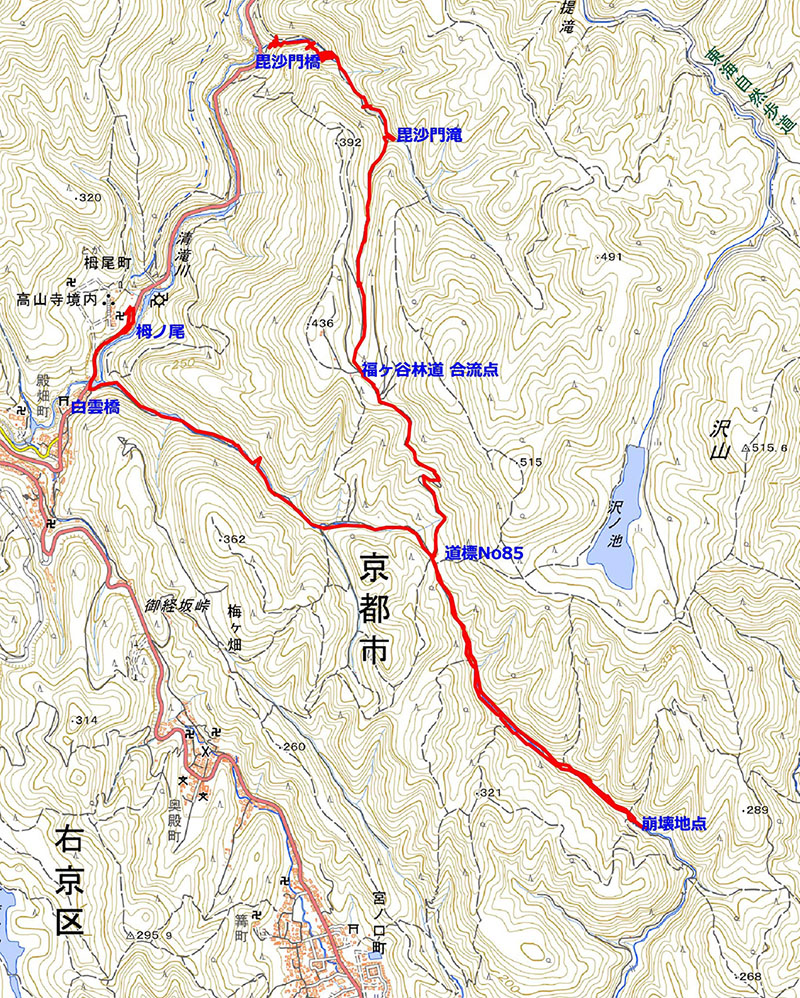〜(15:00)京都トレール85〜(15:48)倒木地点〜(16:45)京都トレール85
