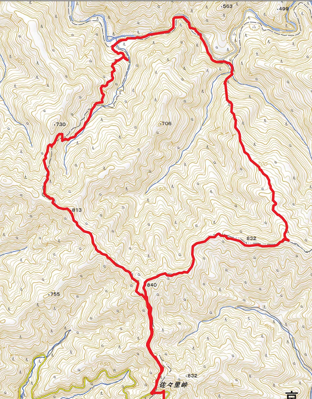 ・コース =出町柳駅(7:30)=(8:50)佐々里峠(9:00)~(10:10)大段谷山分岐(10:15)