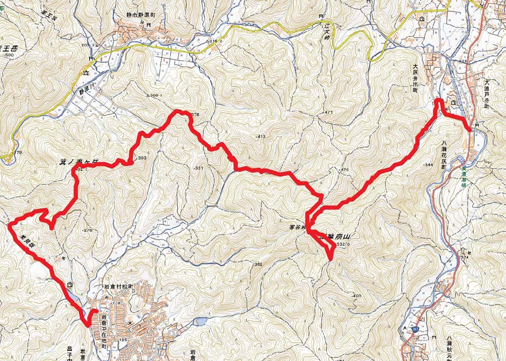 ~(13:25)蓑裏ヶ岳(13:35)~(14:25)岩倉村松バス停