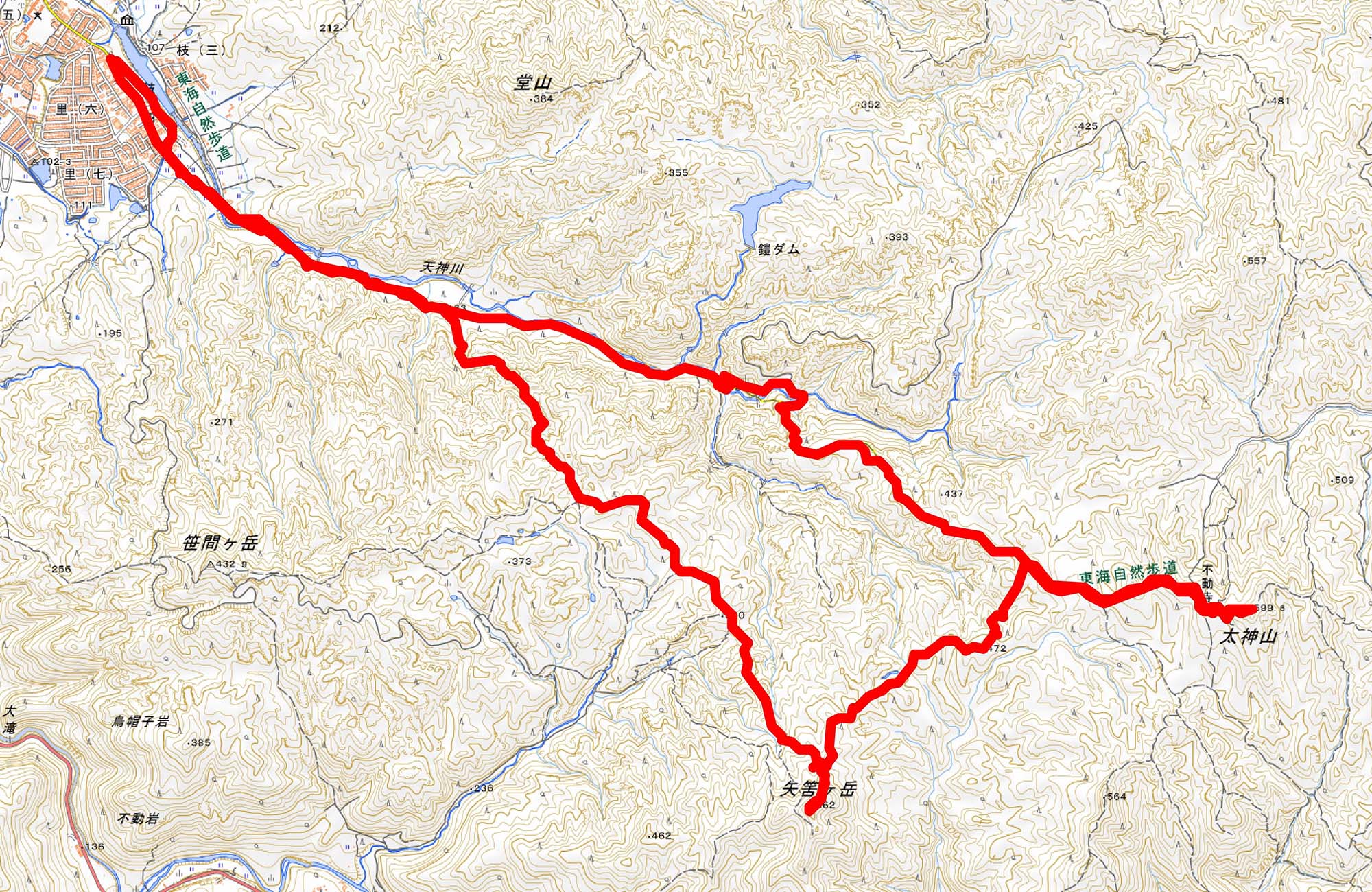 ~(10:45)不動寺~(10:55)太神山山頂(11:05)~(11:10)不動寺・昼食(11:35)