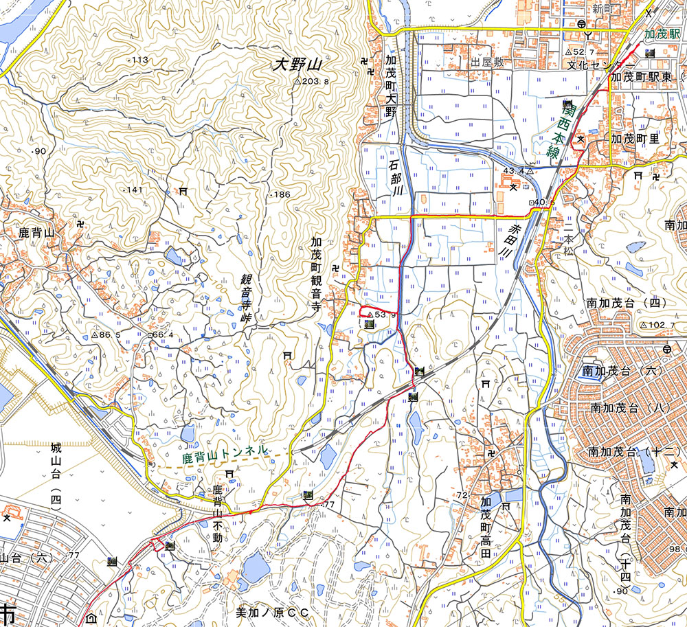 ・コース = JR加茂駅(9:56)〜(10:39)四等三角点(観音寺)〜(10:48)観音寺橋台